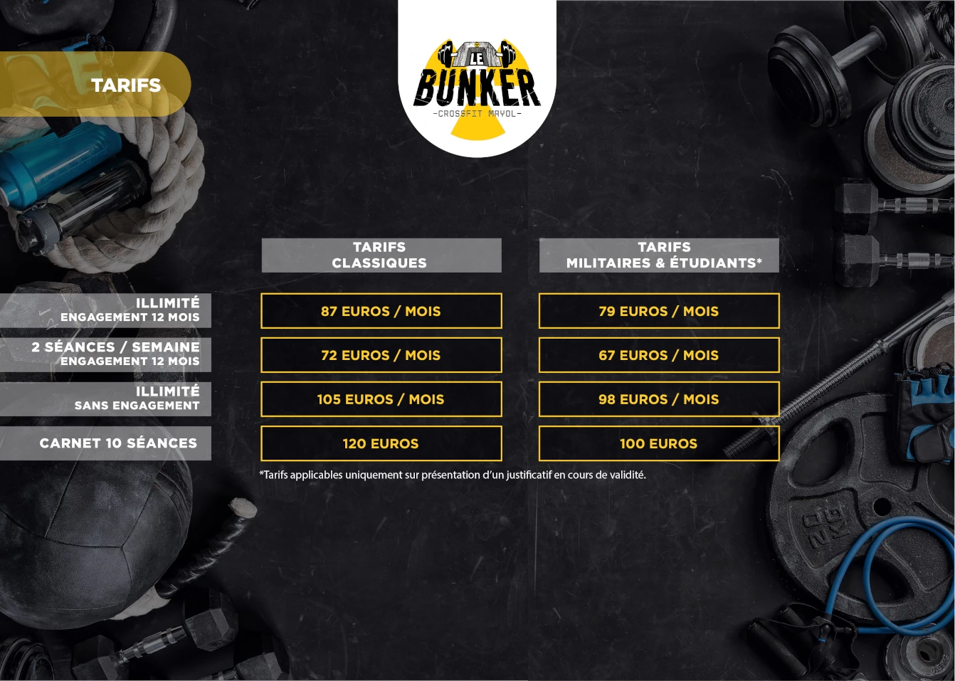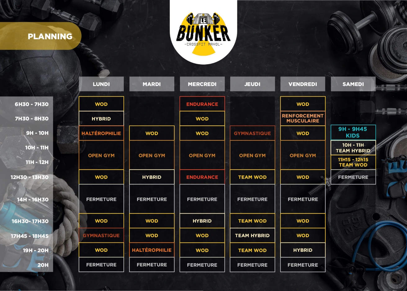 Rejoignez-nous pour découvrir la force d’un esprit d’équipe et le plaisir de vous surpasser dans un cadre stimulant. Au Bunker, c’est la performance et la convivialité qui priment. Préparez-vous à relever des défis, à progresser et à transformer votre quotidien. Ensemble, bâtissons une version plus forte de vous-même !